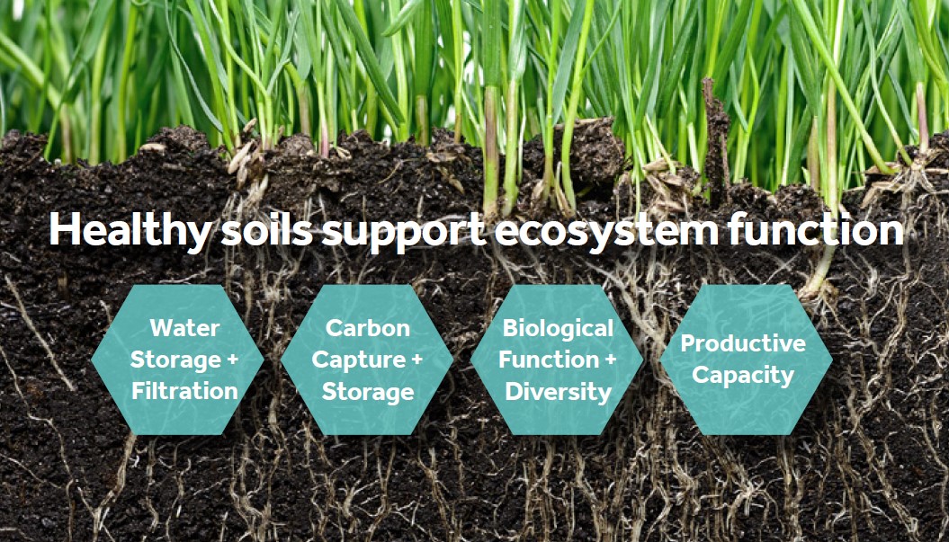 The whole approach can probably be best summed up by: “feed the soil, not the plants”. Regenerative agriculture hinges on a wider understanding of soil biology and its role in plant nutrition than the direct application of primary or secondary nutrients. Feeding the great community of biological actors in the soil makes plant nutrients available for uptake, while plant root exudates are simultaneously feeding fungi and microbes. They depend on organic matter, which is both the food and catalyst for the whole system.