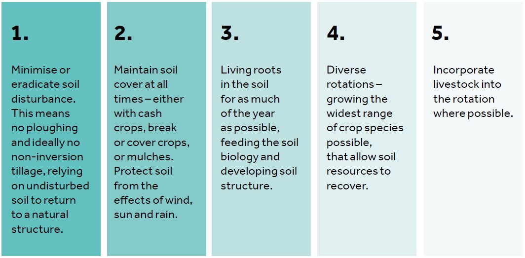 Most people agree that Regenerative Agriculture is hinges on five key principles: