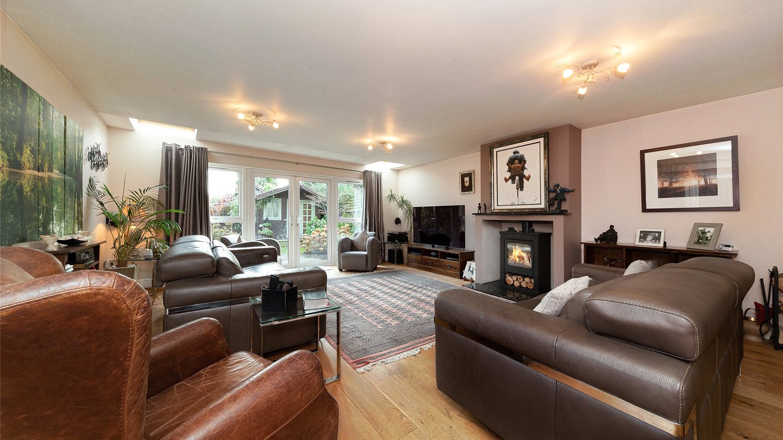 - Spacious Sitting Room with solid oak flooring, wood burning stove and French doors to the rear garden