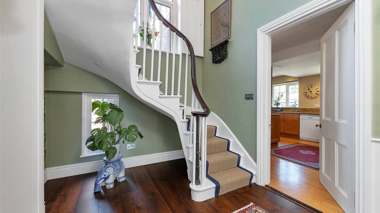 - Stunning Entrance Hall with leaded glass inserts to front door, dado rail with attractive, moulded panelling below and oak flooring